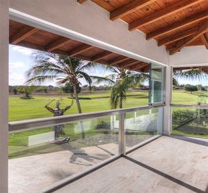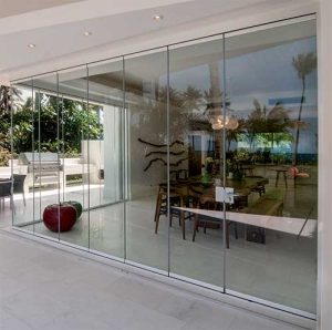 Disponibile con 2, 3, 4, 5 o 6 ante, è ideale per chiusure di grandi aperture in balconi e gazebo: ogni anta si accatasta ordinatamente, liberando l’intero passaggio.