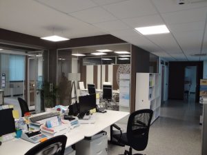 Un altro vantaggio è quello della diffusione della luce. Le superfici vetrate massimizzano l’ingresso di luce naturale, riducono la necessità di illuminazione artificiale e offrono una visione d’insieme che favorisce collaborazione e controllo visivo.